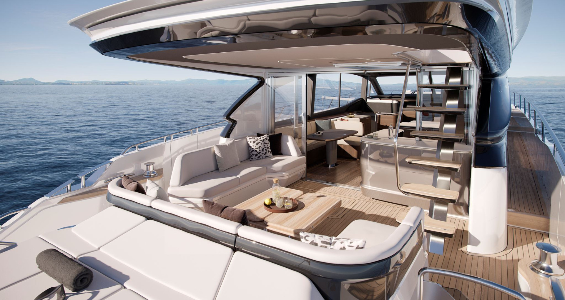 Le Princess 74 incarne l’excellence de la S Class. Son pont principal spacieux et lumineux est idéal pour se détendre, recevoir ou profiter de la navigation. À bord, huit invités bénéficient de quatre cabines en-suite baignées de lumière naturelle grâce aux larges hublots panoramiques.