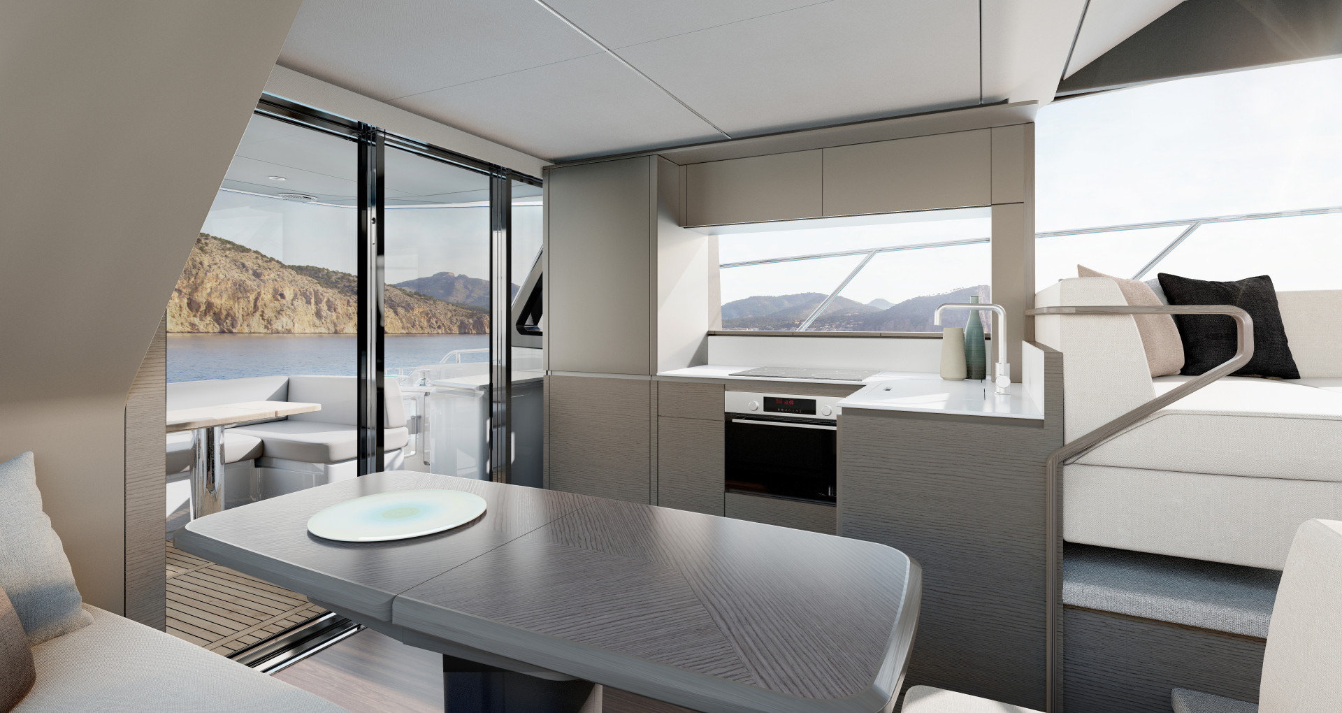 Une nouvelle référence parmi les flybridges de taille intermédiaire — spacieux, élégant et conçu pour des croisières inoubliables.