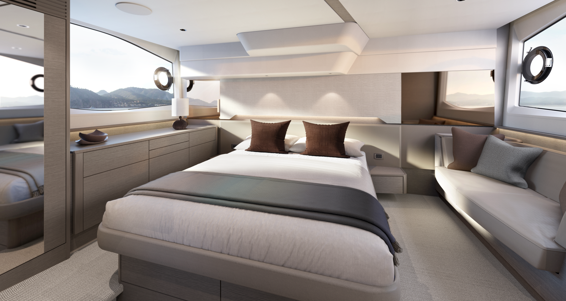Le Princess F54 met en valeur le savoir-faire du chantier, avec des matériaux haut de gamme, des finitions raffinées et de nombreuses possibilités de personnalisation.